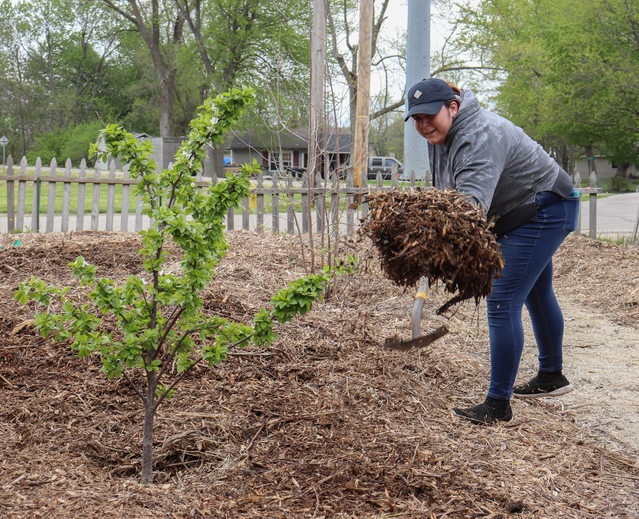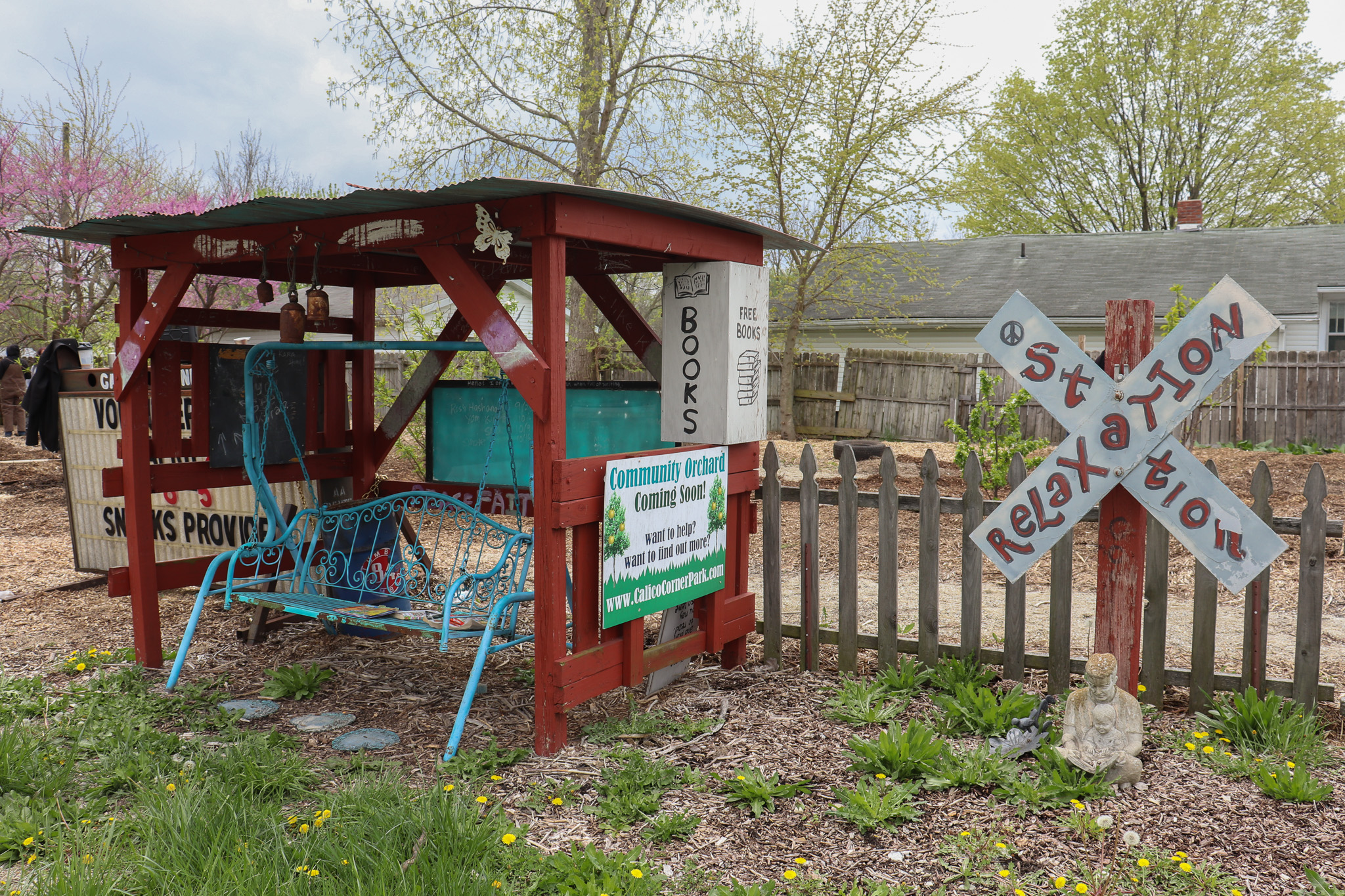 Calico Corner Park is in the works of becoming a new community fruit orchard on the south side of Muncie. Located at the corner of E 16th St. and S Meeker Ave., by the Cardinal Greenway Trail, Calico Corner Park used to be a vacant lot of overgrown weeds and trash. It was around 2019 when Sarah and Dave Herbert started taking proper care of the property, and they put together a “Relaxation Station” there with a free book library for anyone that wanted to stop and rest there while walking by on the Cardinal Greenway Trail. It wasn’t until a year later that the Herbert’s got the option to buy the property, and they started Calico Corner Park. It may be a while until the food forest is ready for consumption, but the community is encouraged to come visit the park’s prayer nook and free book library until then. Photos by Madelyn Guinn.
