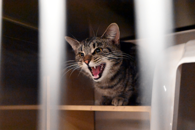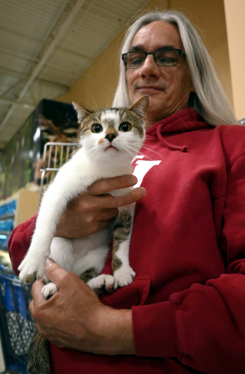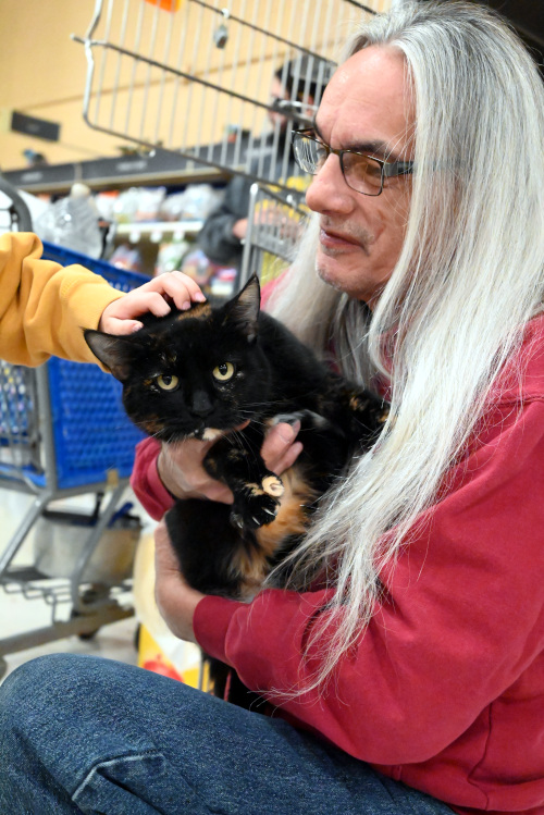 Since 1981, Action for Animals has been working to help stray and homeless cats through services such as microchipping and TNR. The group partners with PetSmart Charities to get cats into the adoption pool and into loving homes. On Saturday, April 22, 2023, six cats – Jewell, Gema, Mango, Nellie, Barbara and Shahra – were brought into PetSmart to start looking for a loving home. Volunteers John Shockley and Charlie Salaz prepared for the incoming felines by preparing food bowls, cleaning cages and getting litter boxes ready. Shockley stayed after preparations were made to speak with PetSmart patrons to try and advocate for the cats’ adoptions. Photos by Eleni Bow