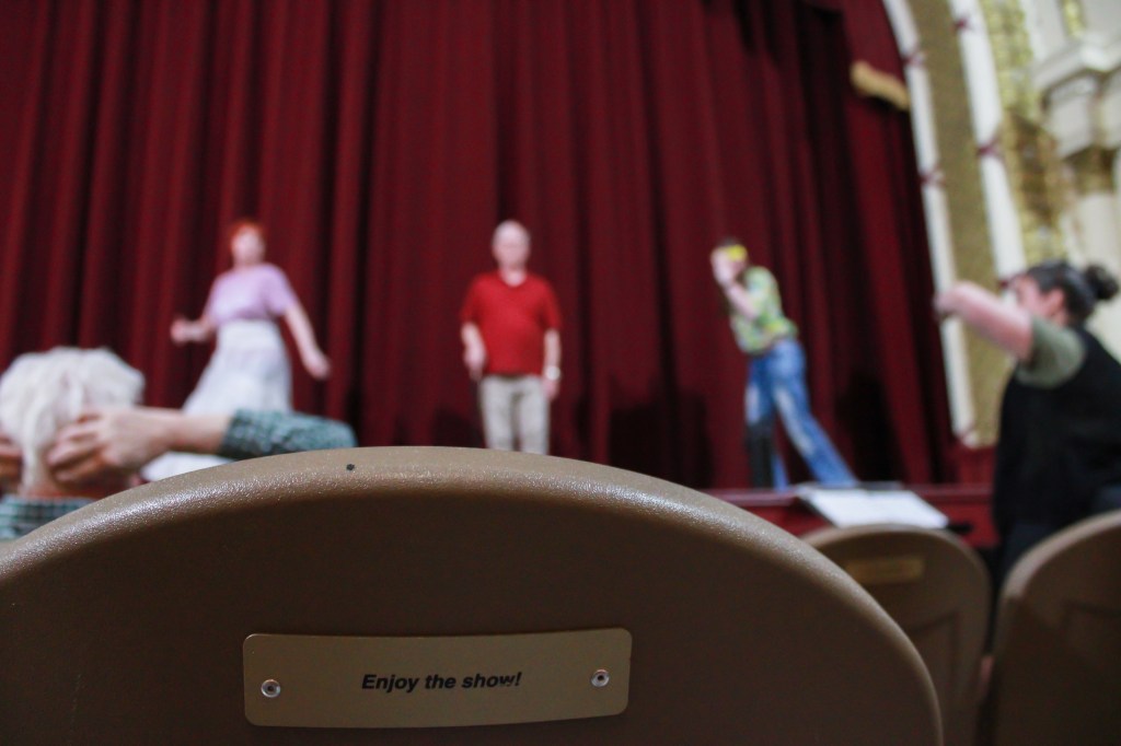 The cast of Hello, Dolly! rehearse bows at Muncie Civic Theatre on Monday, March 30, 2026, in Muncie, Ind. (Photo by Branden Woods)