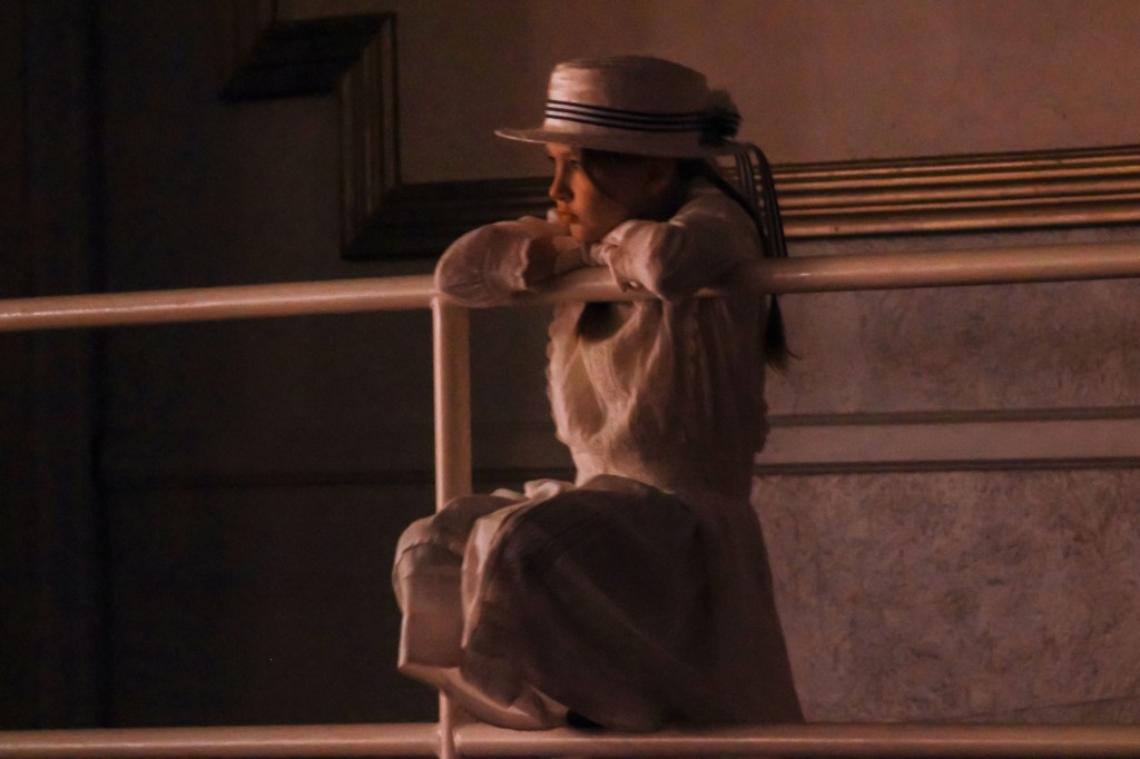 Hello, Dolly! child actress Ruth Carrigan observes the performance from offstage at Muncie Civic Theatre on Monday, April 6, 2026, in Muncie, Ind. (Photo by Branden Woods)