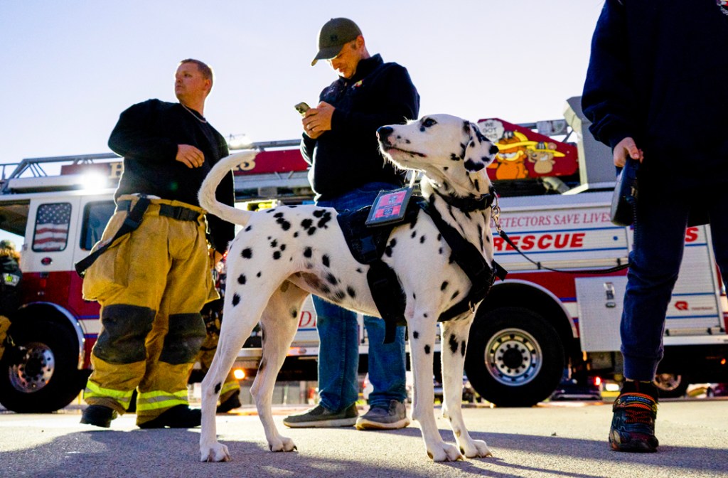 Hamilton Township Volunteer Fire Department K-9 Molly makes an appearance at the station on Tuesday, April 7, 2026, in Muncie, Ind. Molly is a Dalmatian and lives full-time with Lt. Sam Tertune and his family. (Photo by Isabella Kemper)