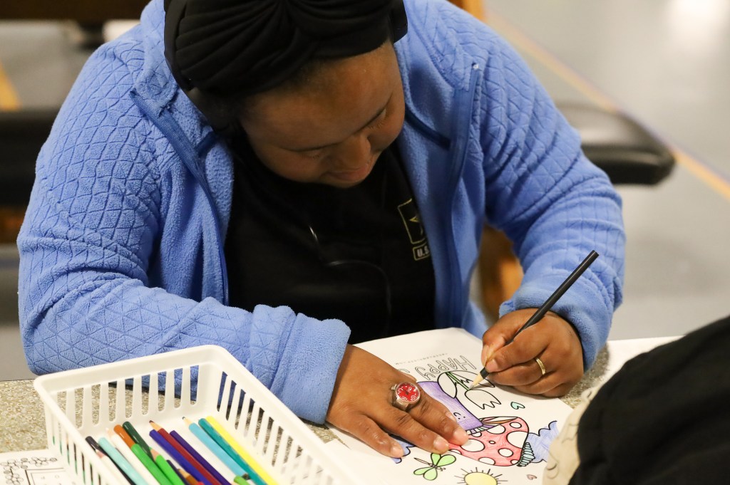 Hillcroft client colors on Wednesday, April 1, 2026, at Hillcroft Services in Muncie, Ind. (Photo by Mallory Hall)
