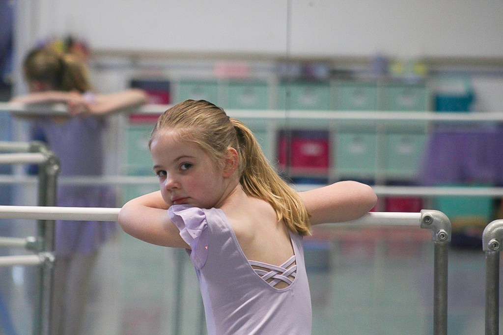 A ballerina stares at the photographer at the Muncie Ballet studio on Saturday, March 28, 2026. (Photo by Kennedy Court)
