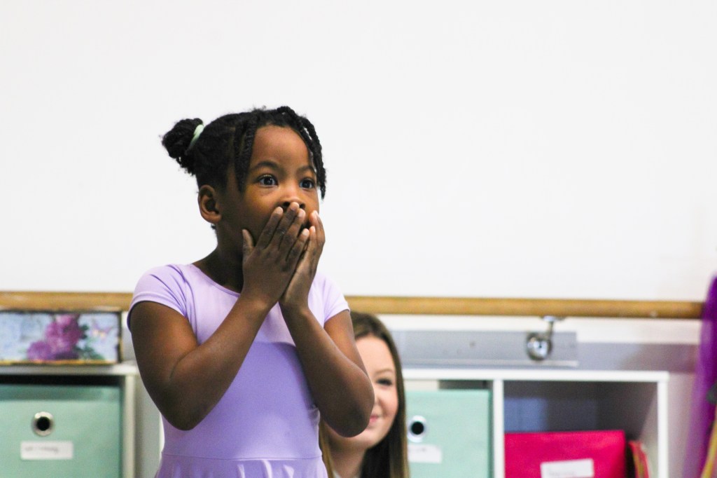 Young ballerinas watch the dancer playing the Wicked Witch at the Muncie Ballet studio on Saturday, March 28, 2026. (Photo by Kennedy Court)
