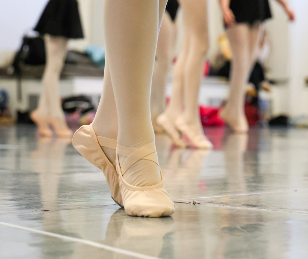 A ballerina stands on her tiptoes as she is dancing in her rehearsal at the Muncie Ballet studio on Saturday, March 28, 2026. (Photo by Anna Evilsizor)