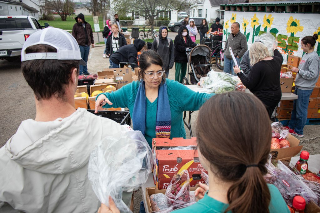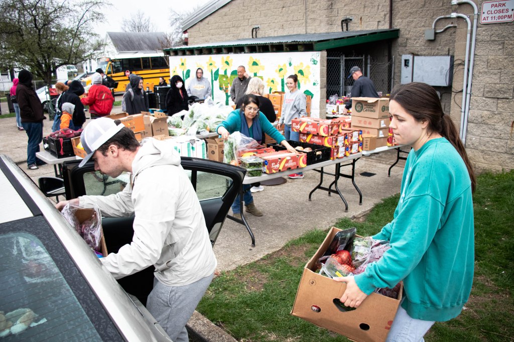 Two volunteer workers put food and goods into a citizen’s back seat during the food drive at the Ross Community Center in Muncie, Indiana, on Friday, April 4th, 2025. (Ian Terrell)Jacqueline Hanoman, Executive Director of the Ross Community Center, and a volunteer read a list to confirm information during the food drive at the Ross Community Center in Muncie, Indiana, on Friday, April 4th, 2025. (Ian Terrell)Food that came off the truck shipment before the food drive at the Ross Community Center in Muncie, Indiana, on Friday, April 4th, 2025. (Ian Terrell)Volunteer workers move food onto outdoor tables for the food drive at the Ross Community Center in Muncie, Indiana, on Friday, April 4th, 2025. (Ian Terrell)A volunteer worker continues to bring food outside during the food drive at the Ross Community Center in Muncie, Indiana, on Friday, April 4th, 2025. (Ian Terrell)A volunteer worker gives off a bag of vegetables while checking a pre-made list at the Ross Community Center’s food drive in Muncie, Indiana on Friday, April 4th, 2025. (Ian Terrell)Executive Director of the Ross Community Center, Jacqueline Hanoman, directs two volunteers on what to do during the food drive at the Ross Community Center in Muncie, Indiana, on Friday, April 4th, 2025. (Ian Terrell)An overview of the food drive at the Ross Community Center in Muncie, Indiana, on Friday, April 4th, 2025. (Ian Terrell)