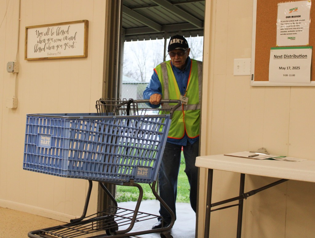 On Saturday, April 19, 2025, volunteers from the Reach Yorktown Ministry made efforts to help residents of Mt. Pleasant, in Yorktown, IN, with food pantry offerings. Reach Yorktown Ministry is a nonprofit organization dedicated to addressing hunger, education, medication assistance, and other personal needs through Christian love. For eight years, on every third Saturday, volunteers have helped residents shop for items they need, striving to provide community service and support families through financial struggles. (Photos by Liz Peterson)